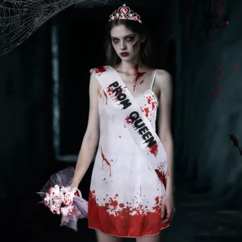 Ghost Bride Halloween Costume with Flowers and Shoulder Strap