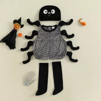 Infant Baby Halloween Spider Costume 3-Piece Set with Vest, Socks & Hat