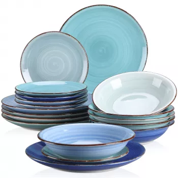 Blue Swirl Earthenware Dinnerware Set for 6 People – 18 Pieces
