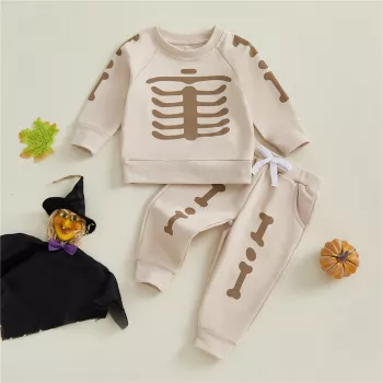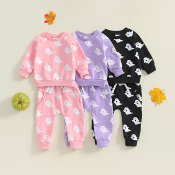 Toddler Halloween Ghost Print Outfit 2Pcs Long Sleeve Sweatshirt and Pants