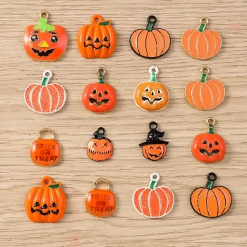 10pcs Halloween Pumpkin Enamel Charms for DIY Jewelry & Crafts