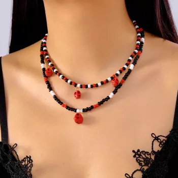 Halloween Beaded Choker Necklace with Ghost, Pumpkin & Bat Charms