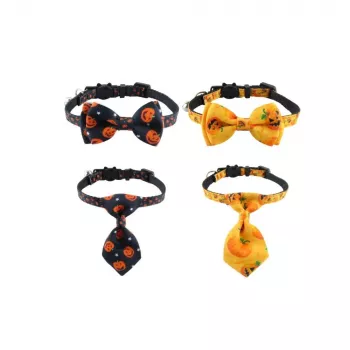 Halloween Cat Collar with Pumpkin Ghost Bow Tie and Bell