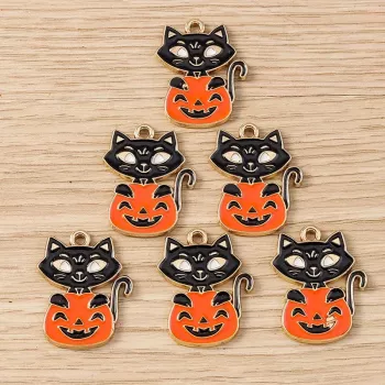 10pcs Halloween Cat & Pumpkin Charms – Enamel Pendants for DIY Jewelry Crafts