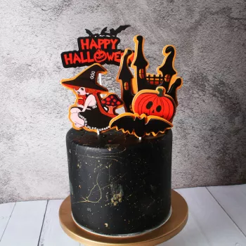Halloween Witch & Castle Cake Topper Set – Pumpkin & Bat Decoration