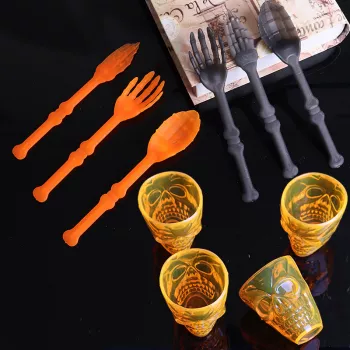 Halloween Party Disposable Tableware Set with Skull Cup and Cutlery