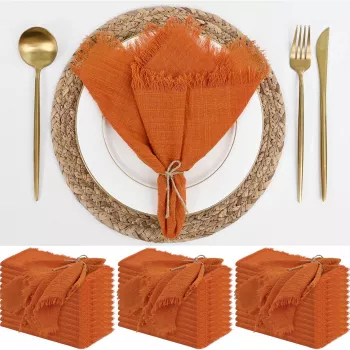 12PCS Cotton Linen Cloth Napkins with Fringe
